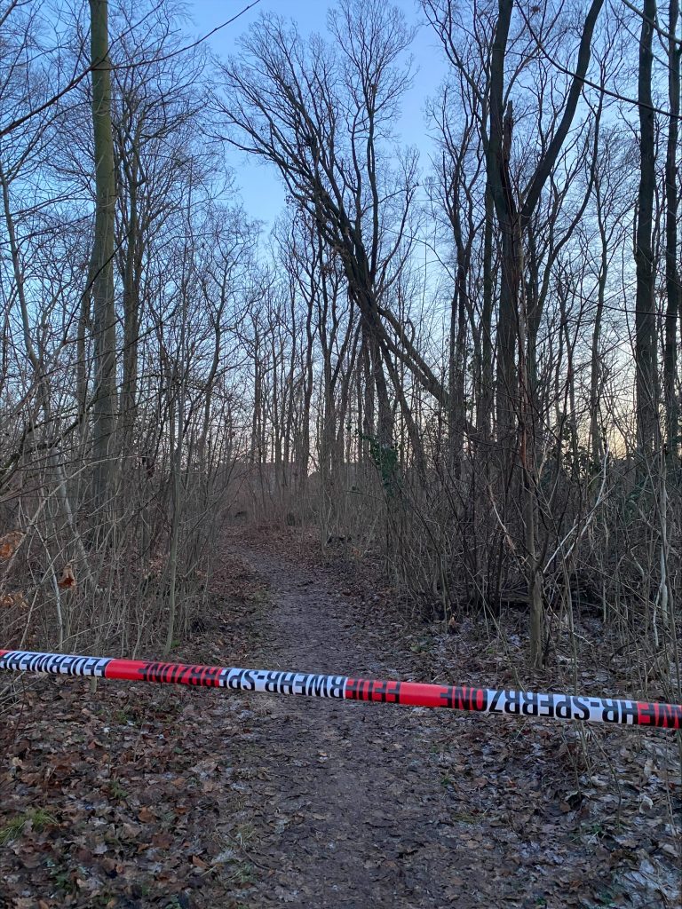 Der betroffene Bereich wurde vorsorglich mit Absperrband gesichert, die umliegenden Trampelpfade sind bis zur Beseitigung der Gefahrenstelle gesperrt.